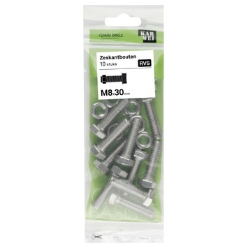 KARWEI zeskantbout voldraad rvs M8x30 mm 10 stuks