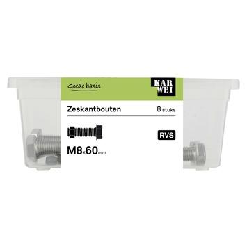 KARWEI zeskantbout voldraad rvs M8x60 mm 8 stuks7.39