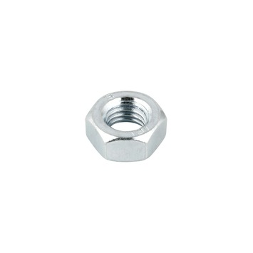 Verzinkt zeskantmoer. Deze moer altijd in combinatie met een metrische bout gebruikt, zoals slotbouten, zeskant- en of tapbouten