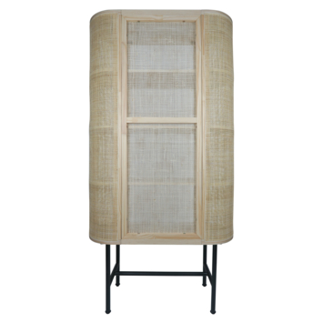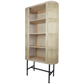 Deze webbing kast met afgeronde zijkanten is een echte eyecatcher en past in elk interieur. 3 planken zorgen ervoor dat je genoeg boeken, mooie woonaccessoires of andere spullen kan opbergen. Webbing is weer helemaal trendy dit jaar. Terug van weggeweest, klaar om te blijven. Webbing is een soort gevlochten riet, wat het een zeer stijlvol en universeel materiaal maakt.