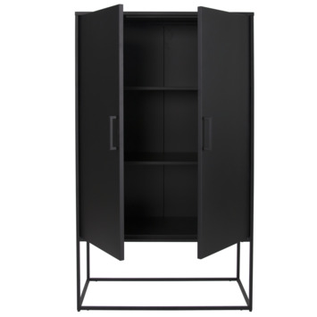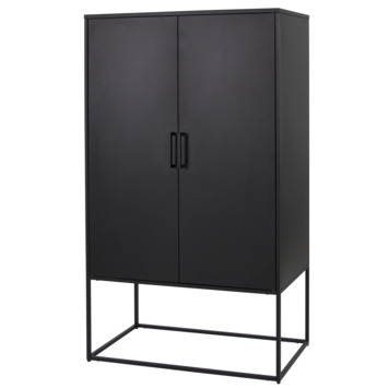 De multifunctioneel inzetbare 2-drs voor al je rommeltjes. Dat is de kast Tom. Het gebruikte metaal geeft de kast een industrieel uiterlijk. Doordat de onderkant vrij is kun je het makkelijk schoonhouden, wel zo praktisch. De kleur is zwart. De afmetingen zijn (HxBxD) 145x82x40 cm.