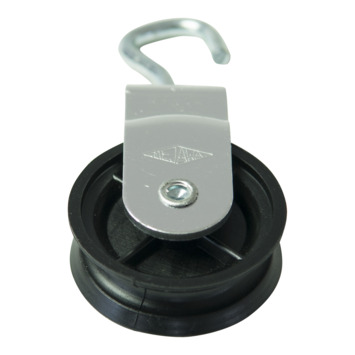 Katrol met polypropyleen wiel zwart 40 mm. De katrol is uitsluitend voor binnengebruik en heeft een maximale belasting van 10kg.