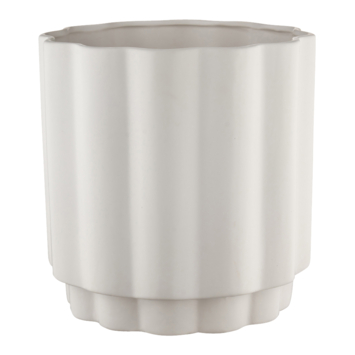 Met deze moderne bloempot voeg een hedendaags accent toe aan je interieur. De vaas heeft een geribbeld design en is mat wit van kleur. De gegolfde buitenkant maakt deze bloempot uniek. De pot is gemaakt van stevig keramiek, heeft een hoogte van 30 cm en een diameter van 30 cm. Geschikt voor gebruik binnenshuis. Een pot die mooi staat in ,elk huis en dus ook geschikt is als basis voor een cadeau voor iemand anders.