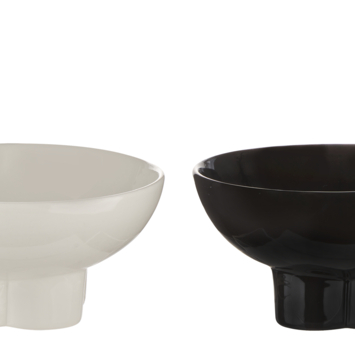 Keramieken schaal op pootjes wit zwart 20x20x10cm