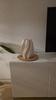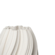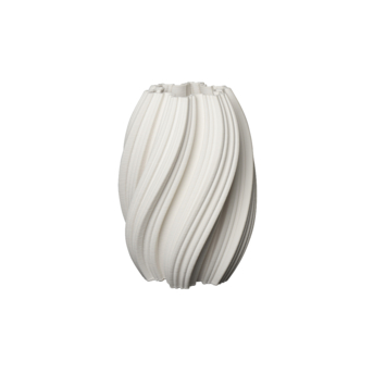 De vaas lijkt geprint door een 3d printer. Hij bestaat uit laagje op laagje.