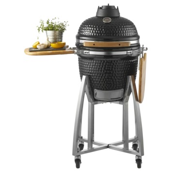 Keramische kamado houtskool Barbeceu Osaka extra large is een multifunctionele barbecue. Met deze (kamado) barbecue kun je niet alleen mals vlees en vis bereiden maar ook bijv. quiches of pizza. Door het keramische materiaal waarvan de Osaka is gemaakt kun je de grilltemperatuur perfect regelen. Het rooster heeft een diameter van Ø 47 cm. Aan de zijkant zitten twee hardhouten tafeltjes waar je extra ruimte hebt om eten te bereiken en te bewaren. Door het onderstel kun je deze BBQmakkelijk verplaatsen. Ook in compact en large variant.
