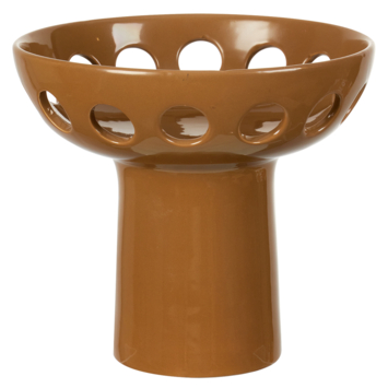 Mooie keramische schaal in bruine kleur. De schaal kan voor verschillende doeleinden gebruikt worden, ter decoratie of bijvoorbeeld als fruitschaal. De schaal heeft een glossy finish en is 19 cm hoog.