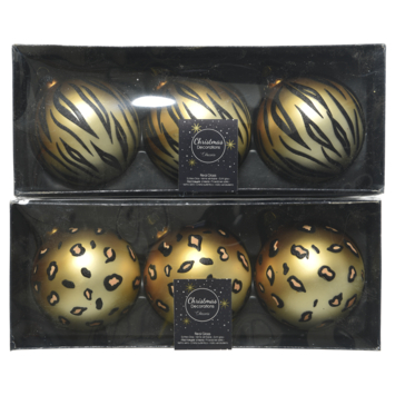 Hele leuke kerstballen met dierenprint. De kerstballen zijn van glas en worden keurig ingepakt geleverd. Heel leuk voor wie vab dieren houdt