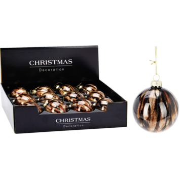 Kerstbal glas gemengd bruin design Ø 8 cm per stuk