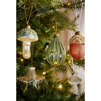 Deze prachtige kerstbal is een stijlvolle klassieke toevoeging voor in je kerstboom. De glazen kerstbal is verkrijgbaar in drie prachtige matte kleuren; rood, goud en groen. Ook leuk om met elkaar te combineren. Daarnaast is de glazen kerstbal licht afgewerkt met glitter, erg feestelijk! Je kan de kerstbal gemakkelijk met andere kerstballen combineren. De kerstbal heeft een diameter van 7 cm. Door middel van het touwtje kun je hem eenvoudig ophangen.