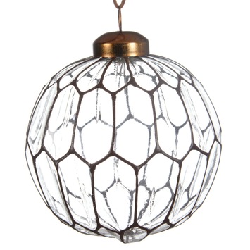 Fraaie glazen kerstbal van 8 cm. De kerstbal heeft een motief van bruine laklijnen op het glas.De kerstbal met bruine dop en bruin lint. Om de kerst binnen en buiten helemaal compleet te maken kun je deze kerstballen combineren met diverse kerstversiering en kerstverlichting.