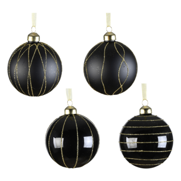 Deze zwarte glazen kerstbal zorgt voor een chique effect in jouw kerstboom. De gouden details maken het helemaal af. Verkrijgbaar in 4 verschillende opdrukken in zowel een matte als glanzende finish.