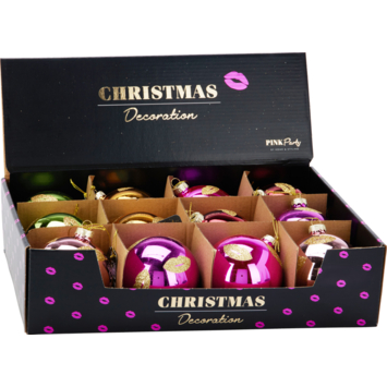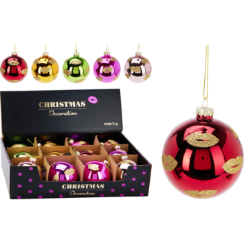 De kerstbal mix glas kusjes divers Ø 8 cm per stuk geeft jouw kerstboom een vrolijke en eigentijdse uitstraling. Deze glazen kerstballen zijn afgewerkt met een speels kusjesmotief dat direct warmte en gezelligheid toevoegt. Verkrijgbaar in vijf verschillende kleuren – rood, geel, groen, roze en lichtbruin – kun je ze combineren voor een kleurrijk geheel of juist kiezen voor één tint voor een rustige uitstraling. Met een diameter van 8 centimeter vallen ze mooi op tussen andere ornamenten. Perfect om jouw kerstdecoratie een unieke en persoonlijke sfeer te geven.