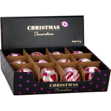 De kerstbal mix glas licht roze met divers design Ø 8 cm per stuk geeft jouw kerstboom een speelse en romantische uitstraling. Deze glazen ballen zijn uitgevoerd in een zachte lichtroze kleur en voorzien van een vrolijk patroon: kies uit rode hartjes of rode zuurstokken. Met hun diameter van 8 centimeter trekken ze direct de aandacht en brengen ze een frisse, moderne twist aan je kerstdecoratie. Perfect om je boom te laten stralen en een warme en vrolijke sfeer te creëren tijdens de feestdagen.