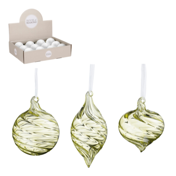 Dit ornament valt direct op door het mooie gedraaide glas in een feestelijke groene kleur. Het glazen ornament is verkrijgbaar in drie varianten; kerstbal druppel en ui. Ook mooi om elkaar te combineren! De groene kerstbal heeft een diameter van ongeveer 8 cm. Door middel van het touwtje kun je hem gemakkelijk ophangen.
