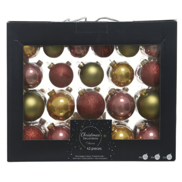 Waarom moeilijk doen, als het ook makkelijk kan? Met deze set van 42 glazen kerstballen heb je al snel een gehele kerstboom gevuld. Deze set bevat 3 verschillende maten kerstballen in 3 verschillende kleuren. Zo weet je zeker dat je variatie in de boom hebt.
