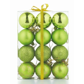 Kunststof kerstbal in de kleur groen. Deze kerstbal kan heel mooi gecombineerd worden met de kerstballen in verschillende kleuren. Om deze kleurstijl helemaal compleet te maken kun je deze kerstballen combineren met kerstversiering.