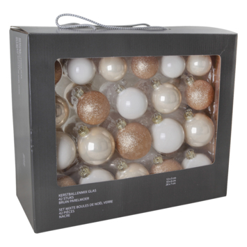 Nog op zoek naar mooie kerstballen? Met ons uitgebreide assortiment aan kerstballen zit je altijd goed! Deze kerstballen mix in de kleuren bruin en parelmoer bestaat uit 42 stuks. Niet alle ballen zijn hetzelfde waardoor het ideaal is om leuke combinaties te maken. De kerstballen zijn gemaakt van glas. Ook verkrijgbaar in andere kleuren.