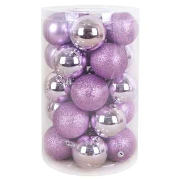 Ben je nog op zoek naar mooie kerstballen? Met ons uitgebreide assortiment aan kerstballen zit je altijd goed! Kerstballen mix gemaakt van kunststof. In totaal bevat de verpakking 25 stuks. De mix bestaat uit verschillende kleuren winterpaars in mat en glans.