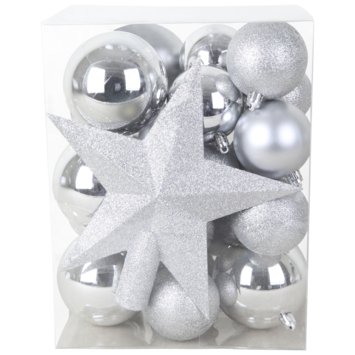 Kerstballen mix kunststof zilver inclusief piek