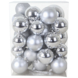 Kerstballen mix inclusief piek gemaakt van kunststof. In totaal bevat de verpakking 33 stuks. De mix bestaat uit verschillende kleuren zilver in mat en glans.