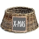 De rotan kerstboomhuls met de tekst X-Mas verbergt de kerstboomstam op een decoratieve manier. De afmetingen zijn hoogte 26 cm met de doorsnedes onderzijde van de huls 60 cm en aan de bovenzijde 45 cm. Deze rotan kerstboomhuls is zowel bij een echte kerstboom als bij een kunstkerstboom te gebruiken.