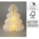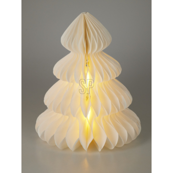 De kerstdecoratie figuur papieren boom met warm wit LED verlichting op batterij 40 cm is een sfeervol accent voor jouw interieur tijdens de feestdagen. Deze witte boom is gemaakt van papier en straalt dankzij 5 warm witte LED-lampjes een zachte en gezellige gloed uit. Met een hoogte van 40 centimeter is hij compact en toch opvallend, ideaal voor op een vensterbank, kast of dressoir. Hij werkt op 3 AAA-batterijen (niet inbegrepen) en is voorzien van een handige timerfunctie die 6 uur brandt en daarna 18 uur uitgaat. Zo geniet je elke dag opnieuw van een sfeervol eindresultaat zonder dat je ernaar hoeft om te kijken.