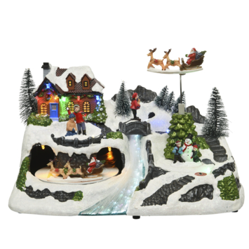 Ben je nog op zoek naar een leuk kerstdorp? Zoek dan niet verder! Dit gedetailleerde miniatuur kerstdorp heeft een winterse uitstraling. Er is zo veel te zien! De kerstman in zijn arrenslee met rendieren, spelende kinderen en een sneeuwpop zorgt voor gezellige winterse taferelen. Dit kerstdorp heeft 12 LED-lampjes. De LED-verlichting werkt op batterijen. Door de gekleurde lampjes en de kerstliedjes krijgt dit winterse tafereel nog meer sfeer!