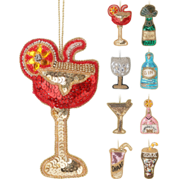 Met de kersthanger drankfles en drankglazen voeg je een vrolijk en speels accent toe aan je kerstdecoratie. Deze ornamenten zijn gemaakt van stevig polyester en daardoor lichtgewicht en makkelijk op te hangen in de kerstboom. De collectie bestaat uit 8 verschillende figuren, zodat je jouw eigen combinatie kunt samenstellen. Elk figuur is per stuk verkrijgbaar, waardoor je gemakkelijk variatie aanbrengt en je boom een unieke uitstraling geeft.