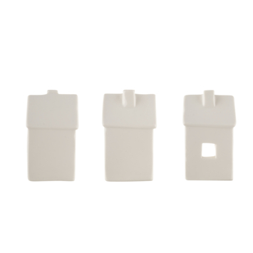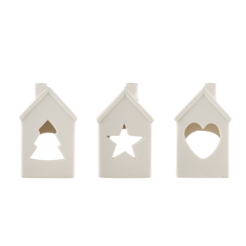 Leuke theelichthouders in de vorm van kersthuisjes. Hier vrolijk je je huis echt mee op! In de kleur wit, met een afmeting van 6,5x6,2x10,2cm
