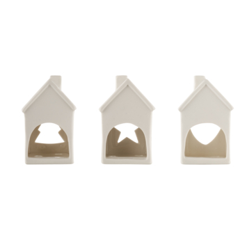Kersthuisje theelichthouder wit