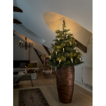 LED Boomkaarsensnoer, 20 druipkaarsen, 7.6m, pizello met kap, luxe knijper, kogelgewricht, spacing 40cm, aansluitsnoer 1.5m, groene kabel, verwisselbare lampjes, 230V, binnen
