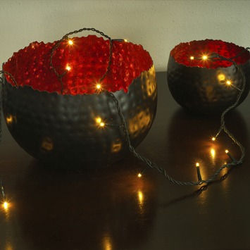 Creëer een gezellige, traditionele kerstsfeer in je interieur met het energiezuinige 50 lampjes extra warmwitte LED verlichtingsnoer 6353-820 van Konstsmide. Dit lichtsnoer is ideaal voor het decoreren van een binnenkerstboom dankzij de snoerlengte van 3,43 meter, maar kan ook op vele andere manieren gebruikt worden om je interieur op een sfeervolle en eenvoudige manier te verlichten. Zo kun je het snoer bijvoorbeeld verwerken in een kerststukje, omwikkelen rond een mand of glazen vaas, of gebruiken om een spiegel te omlijsten voor een extra decoratief lichteffect. Het snoer is gemakkelijk te verwerken omdat het eindigt bij het laatste lampje en dus geen lus vormt. De kabelkleur is donkergroen en de afstand tussen de lampjes is 7 centimeter. De extra warmwitte LED lichtbronnen zijn zeer energiezuinig en hebben een lange levensduur, waardoor ze niet vervangbaar zijn. Het snoer is niet verlengbaar en heeft een laag energieverbruik van slechts 3W. Het 24V laagspanning snoer heeft een erkend Europees veiligheidscertificaat en is dus veilig te gebruiken onder alle omstandigheden. Het snoer voldoet aan hoge kwaliteitseisen, wat duidelijk wordt door de ruime aansluitsnoer van 3 meter lengte, hoge kabeldiameter (waardoor de kabel niet snel kapot getrokken wordt), kwaliteit van de LED lampjes (homogene lichtkleur met minimale tolerantie en lange levensduur), milieubewuste productie (gebruik van recyclebare en duurzame materialen) en aandacht voor sociale omstandigheden (fabricage in BISC gecertificeerde productieplaatsen).