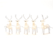 Decoreer je buitenruimte met dit decoratie lichtsnoer met 5 acryl gekleurde rendiertjes van het Zweedse premium kerstverlichting merk Konstsmide. De rendiertjes hebben een afmeting van 13x19x7 cm en in elk rendier zijn 8 warmwitte leds verwerkt. De onderlinge afstand is steeds 1 meter. De set is geschikt voor binnen- en buitengebruik. Het fraai vormgegeven en decoratieve LED acryl lichtsnoer met de 5 stoere rendieren brengen een gezellige sfeer in je buitenruimte of interieur. Decoreer binnen enkele momenten je woonomgeving met deze aandoenlijke huisvrienden! Ze kunnen in een binnen- of buiten- (kerst)boom eenvoudig met tie ribs op takken worden vastgezet. Ook zijn ze leuk in de vensterbank of een een dressoir. In de buitenruimte kunnen ze op allerlei objekten worden bevestigd, bijvoorbeeld op de erfafscheiding of balkonhek. De LED lichtbronnen zijn zeer energiezuinig en duurzaam in gebruik. De lichtbronnen kunnen niet worden verwisseld, maar dit ik ook niet nodig omdat de LEDs de gehele levensduur van het snoer meegaan. De transformator kan zowel binnen als buiten worden aangesloten. Het snoer is niet verlengbaar. Het snoer is zeer energiezuinig en het verbruik van de duurzame lichtbronnen van dit artikel is slechts 0.8W. Het 24V laagspanning snoer heeft een Europees veiligheidskeurmerk en is dus volkomen veilig in gebruik onder alle omstandigheden. Het aansluitsnoer van 5 meter is wit van kleur en valt dus niet erg op tegen de achtergrond. Het snoer is ontwikkeld op basis van hoge kwaliteitseisen zoals deze door consumenten in Scandinavie worden gesteld: dus optimale isolatie tegen vocht en kou. Verder is de kabeldiameter bovengemiddeld, wat resulteert in een hoge trek en wringbelasting. De kabel wordt niet snel kapot getrokken. Geniet ook van dit mooie kwaliteitssnoer in jouw tuin of buitenruimte! Konstsmide (est 1942 Gnosjö Zweden) ¦ premium kerst- party en buitenverlichting ¦maximale klanttevredenheid ¦focus op productontwikkeling & innovatie ¦ social & environmental footprint ¦ Europees erkend veiligheidscertificaat