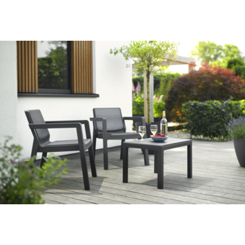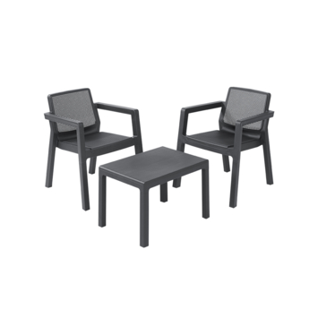 Met de balkonset Emily van Keter geef je je balkon of terras een moderne uitstraling. De set, uitgevoerd in grijs kunststof, bestaat uit twee comfortabele stoelen en een vierkante tafel. Het praktische ontwerp maakt deze set perfect voor kleinere buitenruimtes, waar stijl en functionaliteit samenkomen. De balkonset Emily is ontworpen voor buitengebruik, met materialen die bestand zijn tegen de elementen en weinig onderhoud vereisen.