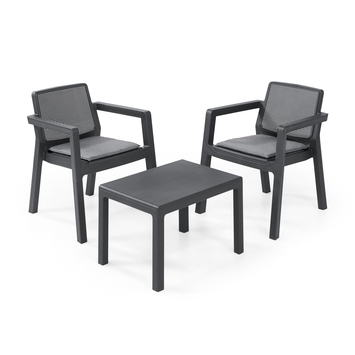 Dat je zelfs op een klein oppervlak, zoals een balkon veel sfeer kunt creëren, bewijst de Emily balkonset. Met twee elegante stoelen en een handige tafel geniet jij van iedere mooie dag. Deze set is heel eenvoudig en in slechts vijf minuten te monteren. Zonder gereedschap! De stapelbare loungestoelen berg je na gebruik weer makkelijk op. De Emily balkonset is verkrijgbaar met en zonder kussens.