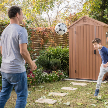 De Keter Darwin 46 bruin woodlook Tuinopbergkast cm is eenvoudig te monteren met simpel gereedschap en heeft een afmeting van: buitenzijde (BxDxH): 130x192x198cm en binnenzijde(BxDxH): 128x192x196 cm. De wanden zijn gemaakt van DUOTECH™ materiaal, dit heeft alle voordelen van kunststof, maar de look van hout. Dit maakt het product onderhoudsvrij, weerbestendig en duurzaam. Nog een mooi voordeel, hierdoor zijn de wanden overschilderbaar. Zo kun je hem de kleuren geven die passen bij jouw tuin- of balkoninrichting. Voor het verven gebruik je een op water gebaseerde acrylverf voor buitengebruik. Aanbrengen doe je met een roller. Kortom, met de koop van deze prachtige Keter Darwin 46 bruin woodlook tuinkast heb je op betaalbare wijze een onverwoestbare en praktische extra opbergruimte in je tuin