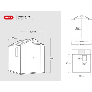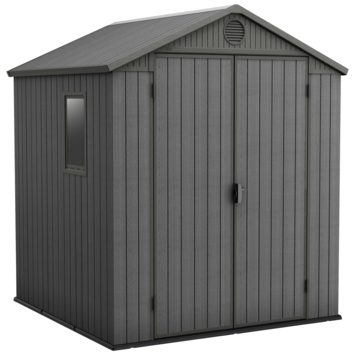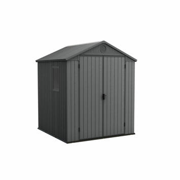 De Darwin 66 ziet er geweldig uit in elke tuin en met zijn ruime opslagcapaciteit kun je er veel spullen in kwijt. Dit kunststof Keter tuinhuis heeft een stevige vloer om de inhoud te beschermen tegen modder en grondwater, dubbele deuren en een raam zodat je alles overdag goed kunt zien. Het is met metaal versterkt en het is volledig weerbestendig. Bovendien zijn de dubbelwandige panelen gemaakt van ons exclusieve Evotech-materiaal voor de warme uitstraling en het gevoel van hout zonder de onderhoudsproblemen