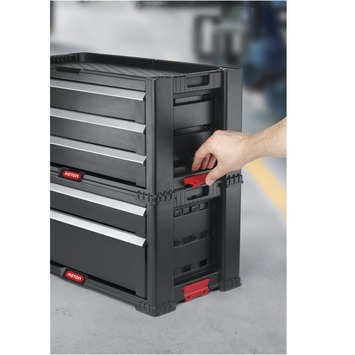 Deze Keter gereedschapskast kunststof 5 lades is een erg handige en stevige opbergmogelijkheid voor onder andere gereedschap. De afmeting is ca. (hxbxd): 36x29x26 cm. Vanwege de neutrale kleurstelling misstaat hij ook niet in bijvoorbeeld een bijkeuken of berging. Deze versie heeft 5 lades en is hierdoor erg geschikt voor het opbergen van zowel kleinere als grotere spullen en gereedschap. De lades zijn te vergrendelen en kunnen eventueel met een klein hangslot (niet meegeleverd) worden vergrendeld. Deze variant met 5 lades is tevens voorzien van soepel rijdende wielen met rem. Doordat de gereedschapskasten onderling te koppelen zijn kun je zelf jouw gereedschapswagen samenstellen of uitbreiden.