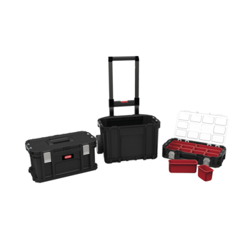 Deze organizer is een handig opbergsysteem met 8 kleine en 2 uitneembare verdeelbakken. Dankzij de extra sterke polycarbonaat deksel blijven alle spullen veilig opgeborgen. Het stevige handvat zorgt ervoor dat je de organizer gemakkelijk mee kunt nemen en de metalen sluitingen zorgen voor een optimale bescherming. De Organizer Keter Connect past op het Connect Trolley Systeem en het Connect Rolling Systeem met behulp van de in elkaar klikkende sluitingen. Zo kun je zelf je ideale opberger samenstellen. Kortom, de perfecte opberger voor zowel professionals als enthousiaste doe-het-zelvers.