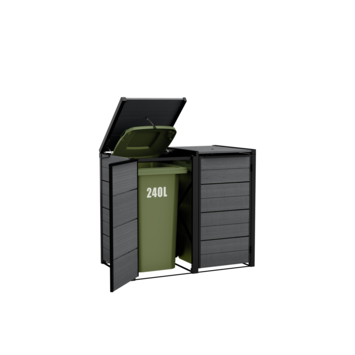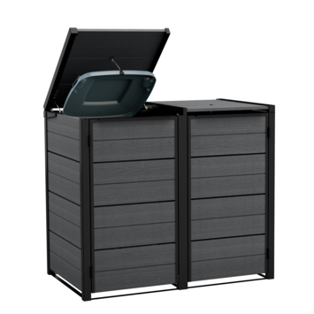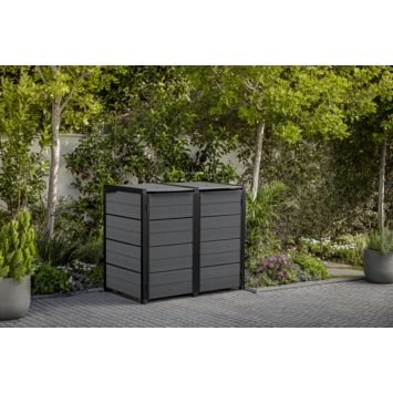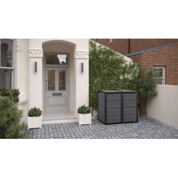De Keter Hide Away containerberging geeft jouw tuin een strakke, verzorgde uitstraling. Geen rommelige kliko’s meer in het zicht, maar een moderne houtlook die perfect past bij een stijlvolle buitenruimte. Het weerbestendige kunststof oogt chic en blijft mooi, seizoen na seizoen. Dankzij de dubbele deuren en het slimme liftdeksel gooi je afval eenvoudig weg zonder de containers eruit te halen. De metalen constructie zorgt voor extra stevigheid, terwijl het onderhoudsvrije materiaal je werk bespaart. Met ruimte voor twee 240L kliko’s en uitbreidbaar naar drie, is dit dé oplossing voor een nette tuin. Verkrijgbaar bij Karwei, zodat jij jouw buitenruimte vandaag nog een upgrade geeft.