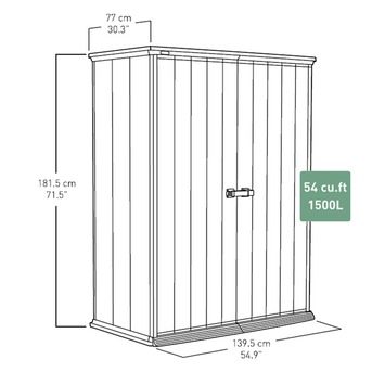 De Keter High Store Tuinopbergkast cm is eenvoudig te monteren met simpel gereedschap en heeft een afmeting van: buitenzijde (BxDxH): 139,5x77x181,5cm en binnenzijde(BxDxH): 130,5x66x176,5 cm. De wanden zijn gemaakt van DUOTECH™ materiaal, dit heeft alle voordelen van kunststof, maar de look van hout. Dit maakt het product onderhoudsvrij, weerbestendig en duurzaam. Nog een mooi voordeel, hierdoor zijn de wanden overschilderbaar. Zo kun je hem de kleuren geven die passen bij jouw tuin- of balkoninrichting. Voor het verven gebruik je een op water gebaseerde acrylverf voor buitengebruik. Aanbrengen doe je met een roller. Kortom, met de koop van deze prachtige Keter High Store tuinkast heb je op betaalbare wijze een onverwoestbare en praktische extra opbergruimte in je tuin