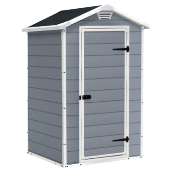 Op zoek naar een compacte onderhoudsvrije berging voor in je tuin? Het Keter Manor 43 kunststof Tuinhuis 128x94x196 biedt een compacte uit de Keter kunststof tuinhuizen collectie oplossing voor opslag van tuingereedschap, barbecues, tuinaccessoires, kinderspeelgoed en tal van andere spullen.Deze berging past met zijn houtlook past uitstekend in een natuurlijke omgeving. Een ingebouwd ventilatiepaneel zorgt ervoor dat er in dit tuinhuisje een constante toevoer van lucht is en beschermt meteen tegen de schadelijke effecten van schimmels. Het bijgeleverde vloerpaneel zorgt voor een stabiele, schone en vochtvrije basis. Na levering kan het Keter Manor 43 kunststof tuinhuisje direct worden opgebouwd, mits een vlakke ondergrond is voorbereid. Twee personen zijn er ongeveer 2-3 uur mee bezig om het Keter huisje op te bouwen. Dit tuinhuis van het merk Keter biedt een stevige, onderhoudsvrije oplossing om je spullen in je tuin op te bergen.