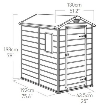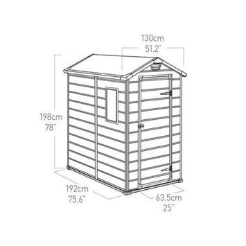 De Keter Manor 46S biedt een ruime en stevige opbergplek voor jouw tuinspullen. Dit kunststof tuinhuis meet buiten 130 x 192 x 198 cm en binnen 111 x 177 x 190 cm. De grote deur met sterke scharnieren zorgt dat je gemakkelijk bij je spullen kunt. Door de dubbele wanden en het verstevigde frame staat het huisje stabiel, ook bij wind. Je kunt de deuren afsluiten met een slot (niet inbegrepen) voor extra veiligheid. Het kunststof materiaal is onderhoudsvriendelijk en bestand tegen alle weersomstandigheden. Het tuinhuis zet je eenvoudig in elkaar met normaal gereedschap. Met twee personen ben je ongeveer 2 tot 3 uur bezig, als de ondergrond vlak is.