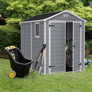 Heb je weinig opbergruimte in de tuin en wil je hier snel en voordelig iets aan doen? Dan is het ruime Keter Manor 68 Tuinhuis de ideale oplossing. In het stevige tuinhuis sla je tuinkussens, gereedschap, buitenspeelgoed en andere tuinaccessoires droog en geventileerd op. Het is gemaakt van duurzaam en weerbestendig kunststof, maar heeft een elegante grijze houtlook. Het is daarom een eyecatcher in iedere tuin. Het Manor Pent 68 Tuinhuis heeft een raam voor daglicht. Het is eenvoudig te monteren.