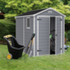 Deze Keter tuinhuis Manor 68 biedt een stevige, onderhoudsvrije oplossing om je spullen in je tuin op te bergen. Het tuinhuisje heeft een buitenmaat van: L 237 x B 189 x H 227 cm. . Montage is zeer eenvoudig met gebruik van standaard gereedschap. Na levering kan het Keter Manor 68 kunststof tuinhuisje direct worden opgebouwd, mits een vlakke ondergrond is voorbereid. Kortom, met de koop van deze prachtige Keter Manor 68 tuinhuis heb je op betaalbare wijze een onverwoestbare en praktische extra opbergruimte in je tuin.