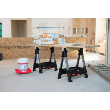 De Keter LumberJack Schraag is ontworpen met zowel de af-en-toe klusser als professionals in gedachten, de schraag biedt stevigheid en veelzijdigheid voor elke klus. Met sterke metalen poten die individueel in hoogte verstelbaar zijn en een draagvermogen van 1350 kg per set van 2, staat deze zaagbok zijn mannetje. Het geïntegreerde houten stuk voegt extra functionaliteit toe, terwijl de handige bodembak je gereedschap georganiseerd houdt. Met afmetingen van ingeklapt 71x6,9x82cm en een gewicht van 7,2kg, is hij compact en draagbaar. Met het TÜV GS-keurmerk voor gegarandeerde kwaliteit. Maak je klussen makkelijker met de Keter LumberJack Schraag.