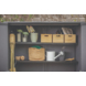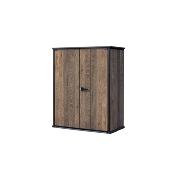 De kunststof panelen hebben een houtlook en zijn makkelijk schoon te maken. Het materiaal neemt geen vocht op en bladdert niet af. De kast is spatwaterdicht en geschikt voor buitengebruik. De kast wordt geleverd als bouwpakket.