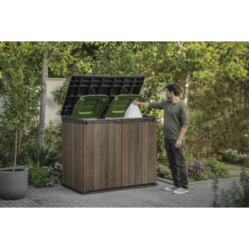 De Keter Store It Out Darwin Walnut opbergbox tuin 1100 liter helpt je om tuinspullen of containers netjes weg te zetten. Met 1100 liter inhoud heb je ruimte voor bijvoorbeeld loungekussens, tuingereedschap of 2 containers van 240 liter. Zo oogt je tuin rustiger en opgeruimd.