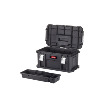 Deze robuuste Keter opbergbox met uitneembare tray is bedoeld voor het opbergen en sorteren van handgereedschap. Dankzij de metalen sluitingen, biedt deze toolbox de perfecte oplossing voor het veilig opbergen van zwaar gereedschap. De Toolbox Keter Connect past met behulp van de klikkende sluitingen op het Connect Trolley Systeem en het Connect Rolling Systeem. Zo kun je zelf je eigen ideale opberger samenstellen. Kortom, de perfecte opberger voor zowel professionals als enthousiaste doe-het-zelvers.